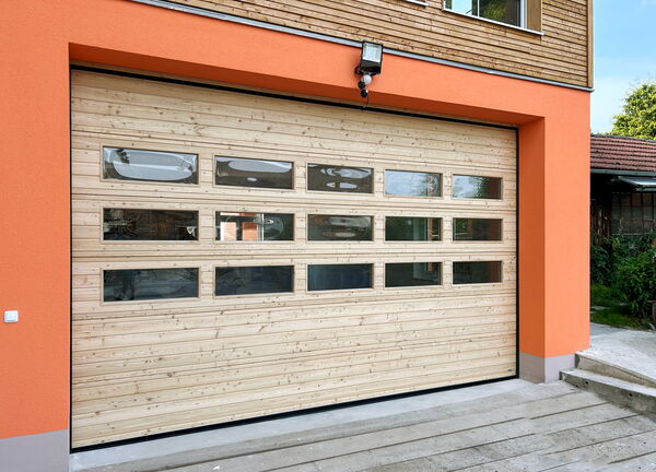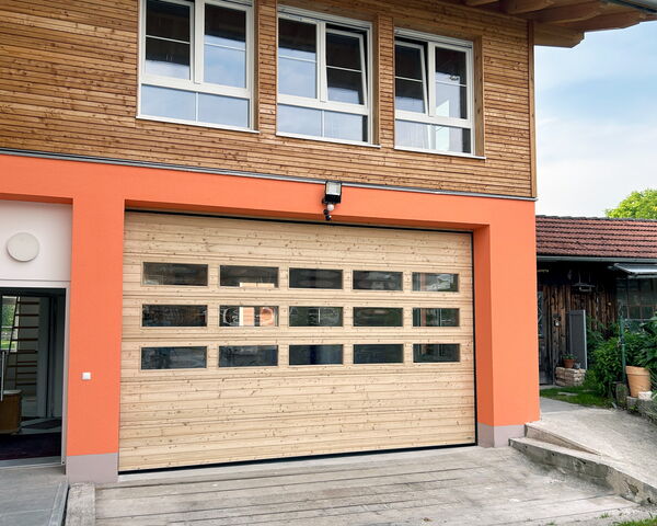 Dieses Holz-Sektionaltor (5000 x 3000 mm) haben wir für einen zufriedenen Kunden in Oberbayern angefertigt und montiert.