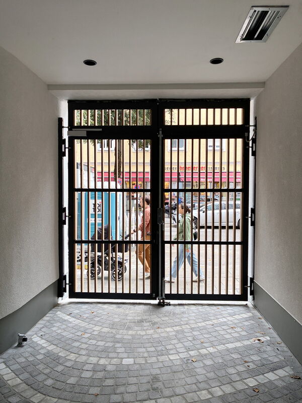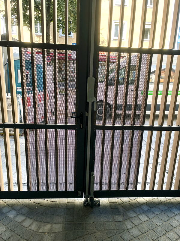 Zusätzlich wurde das Tor mit Lochblech ausgestattet, um das unbefugte Öffnen von außen zu verhindern.