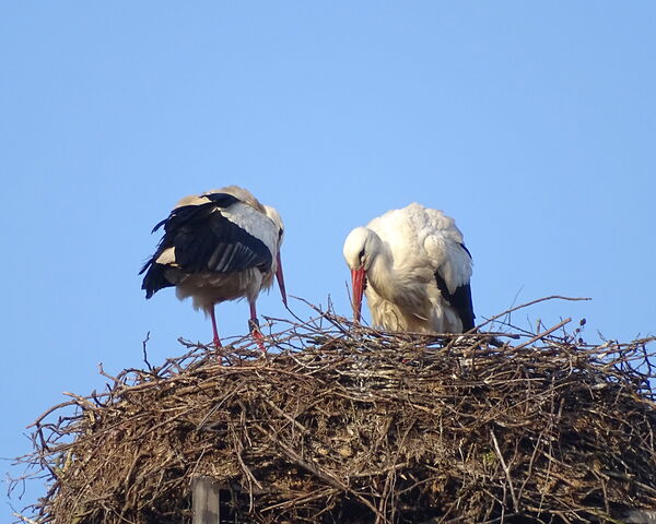 Liebevoll blicken Erni und Alfons auf ihr Nest / Gelege. Die vier Besucher vom letzten Wochenende schauten auch gestern wieder vorbei und wollen wohl den Gedanken an ein neues, luftiges Heim am Sendemasten nicht so schnell aufgeben.