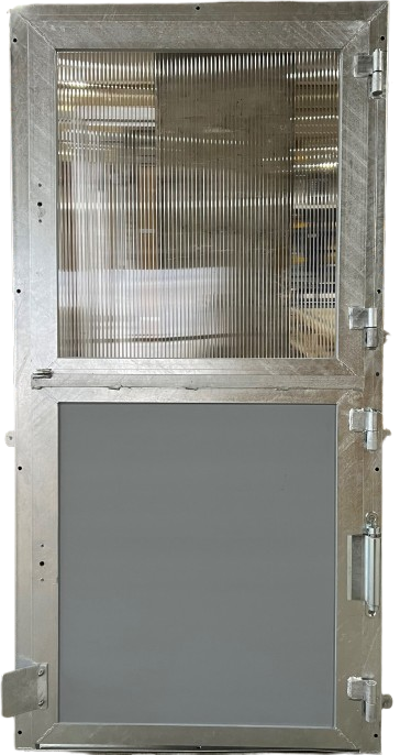Auslauftür Schweinestall, Oberteil verglast, RP Zarge, 4-Kant-Schlüssel, mit Freilaufausrüstung 700 x 2050 mm -