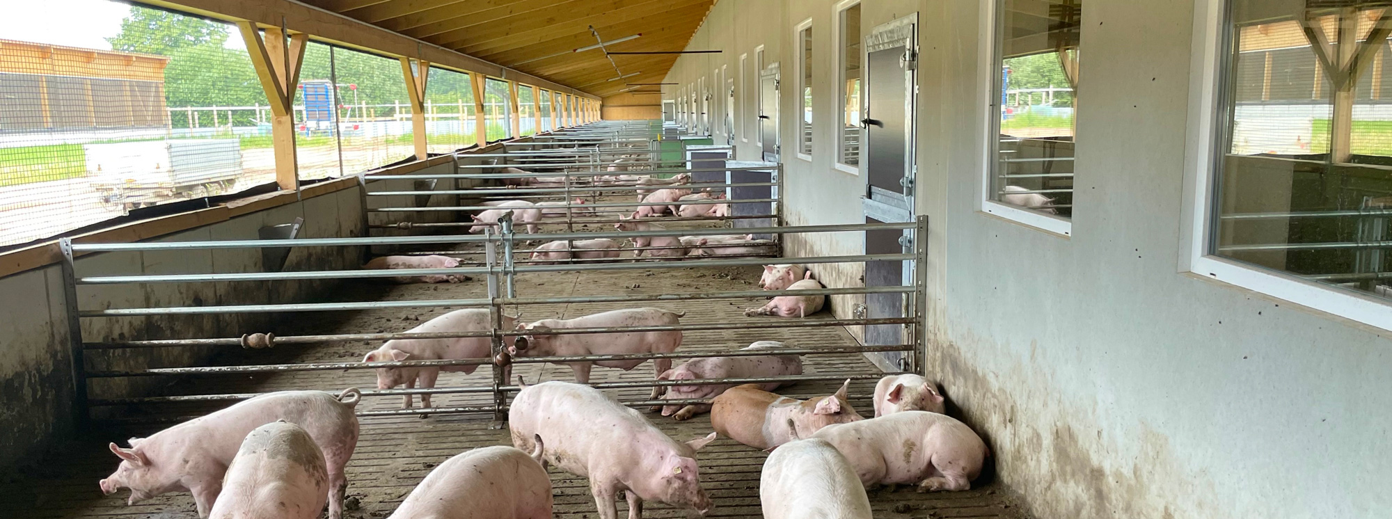 Im Bereich ökologischer Schweinehaltung ist der Auslauf für die Tiere ein Muss. Auch viele konventionelle Betriebe rüsten ihren Schweinestall im Rahmen der Initiative Tierwohl um oder planen bei Neubauten einen Auslauf für die Tiere - siehe Initiative Tierwohl, Haltungsform 3.
